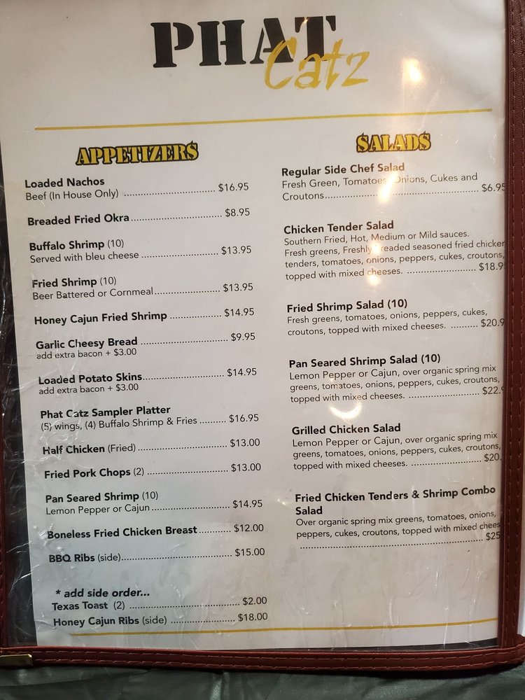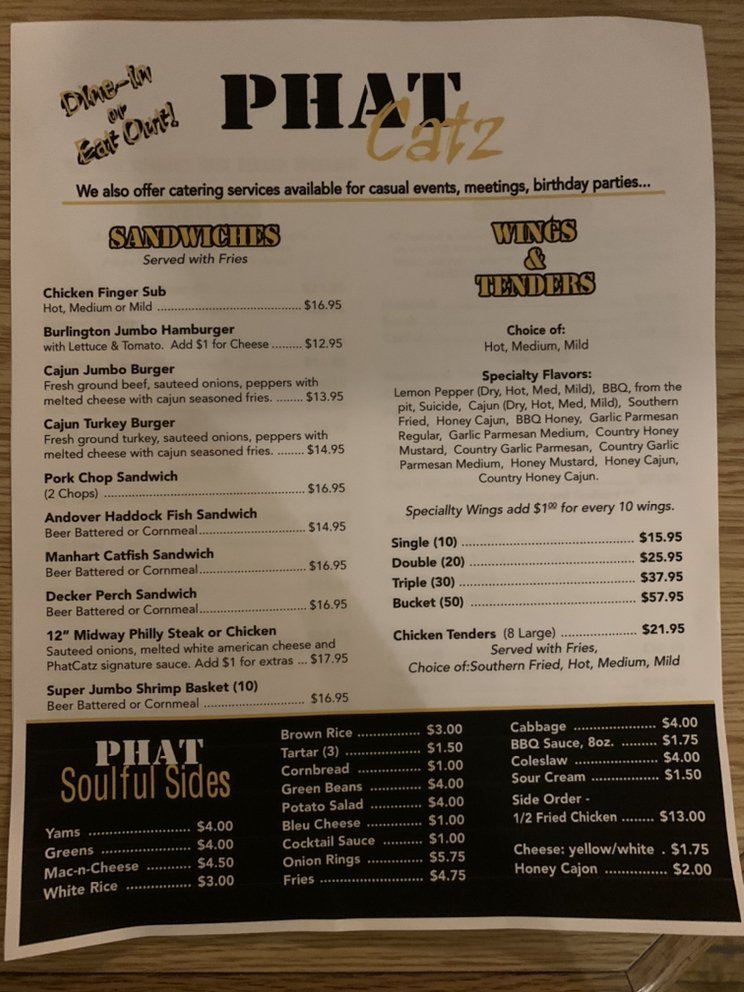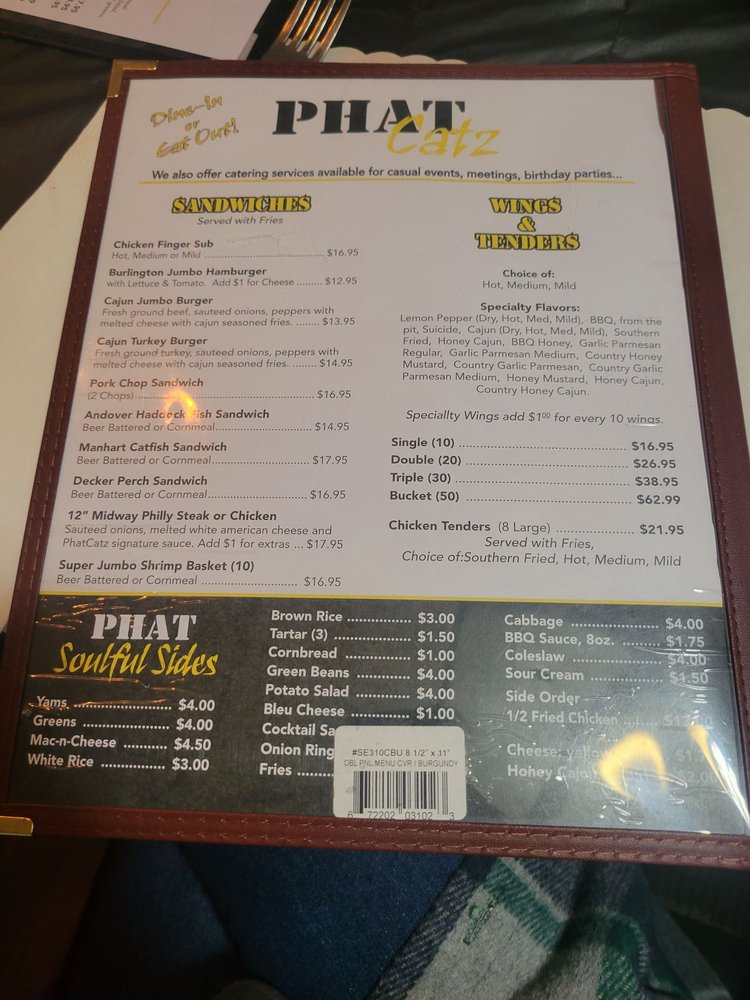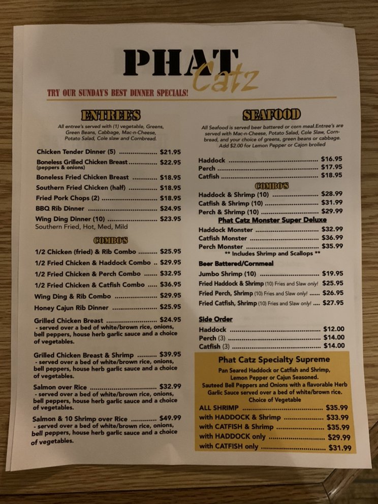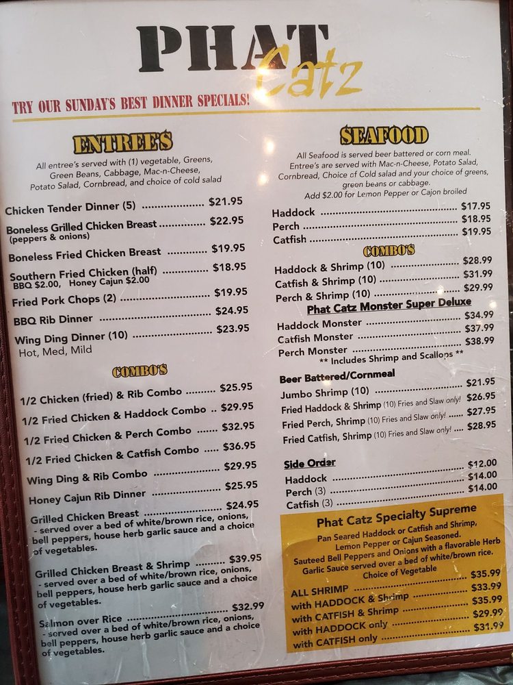 Phat Catz is ideal for gatherings, offering outdoor seating and catering services. With a full bar, happy hour specials, and a welcoming atmosphere, it’s the perfect place to indulge and socialize. Experience a true taste of soul food that resonates with warmth and community!