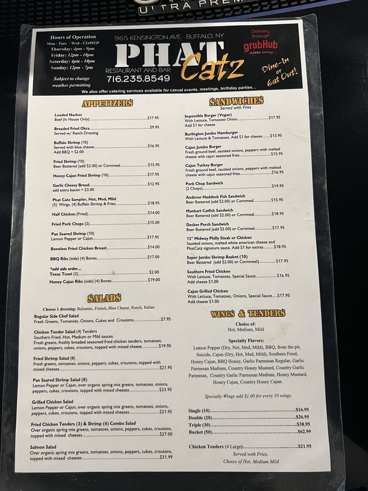 Welcome to Phat Catz Restaurant & Bar, a vibrant soul food haven nestled in Buffalo, NY. This black-owned, women-owned establishment offers a delightful blend of traditional comfort food and modern culinary flair. The menu shines with classics like the crispy Garlic Cheesy Bread and lip-smacking Buffalo Shrimp, perfect for starting your meal on a high note.